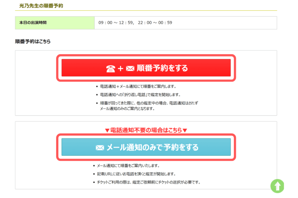 表示された電話番号に電話すると占い師とつながり、鑑定がスタートします。