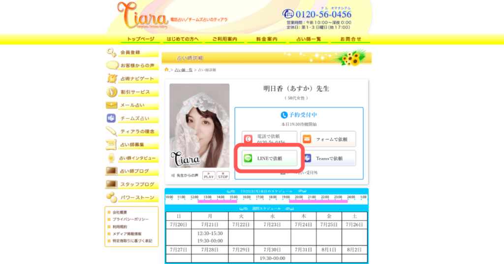 鑑定を受けたい占い師をクリックします。