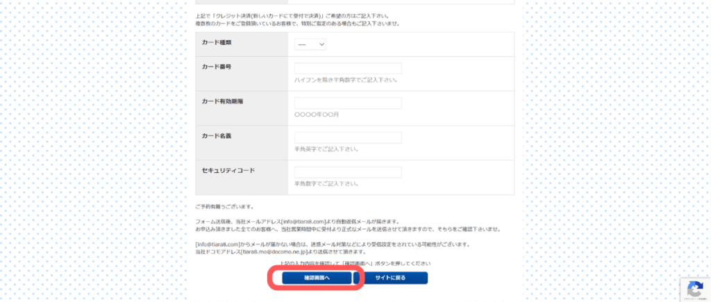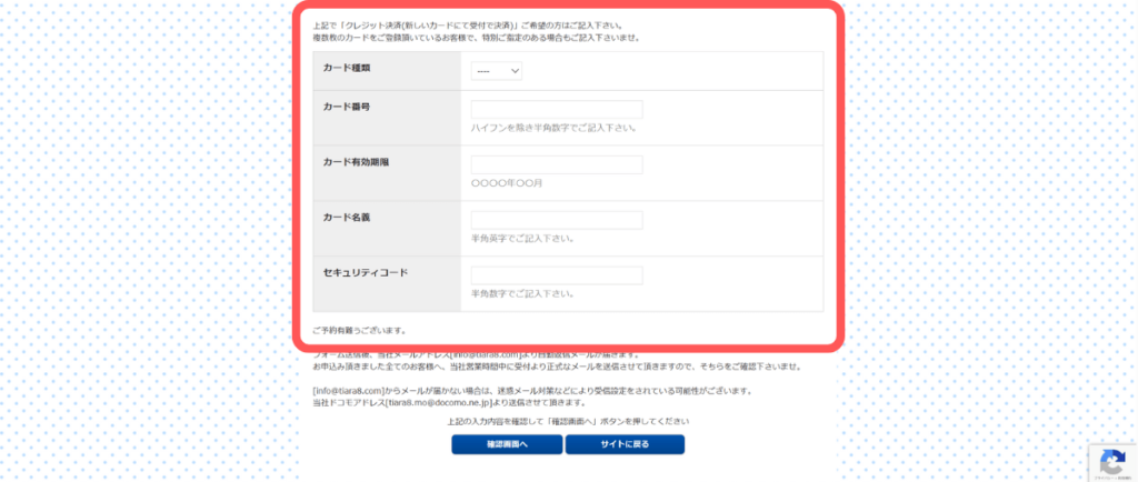 メールは「info@tiara8.com」または「tiara8.mo@docomo.ne.jp」から送信されるため、迷惑メールに入っていないか確認してくださいね。
